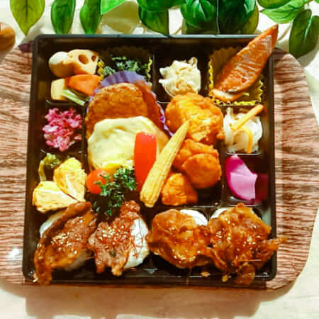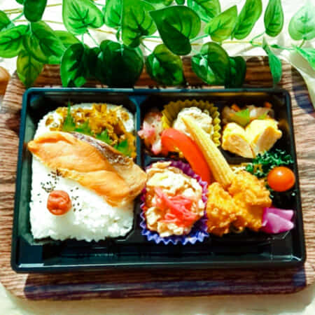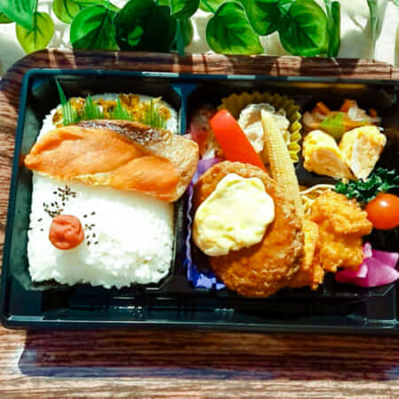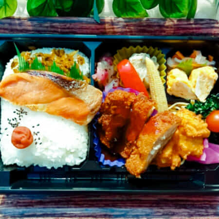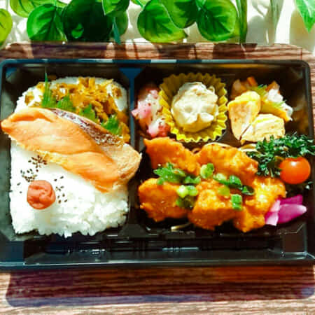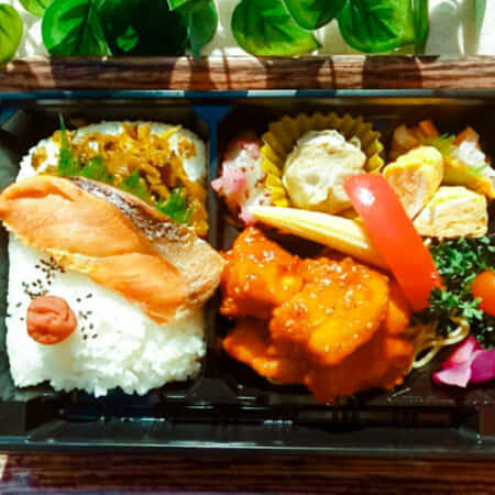 ヤンニョムチキンと鮭がのった幕ノ内弁当